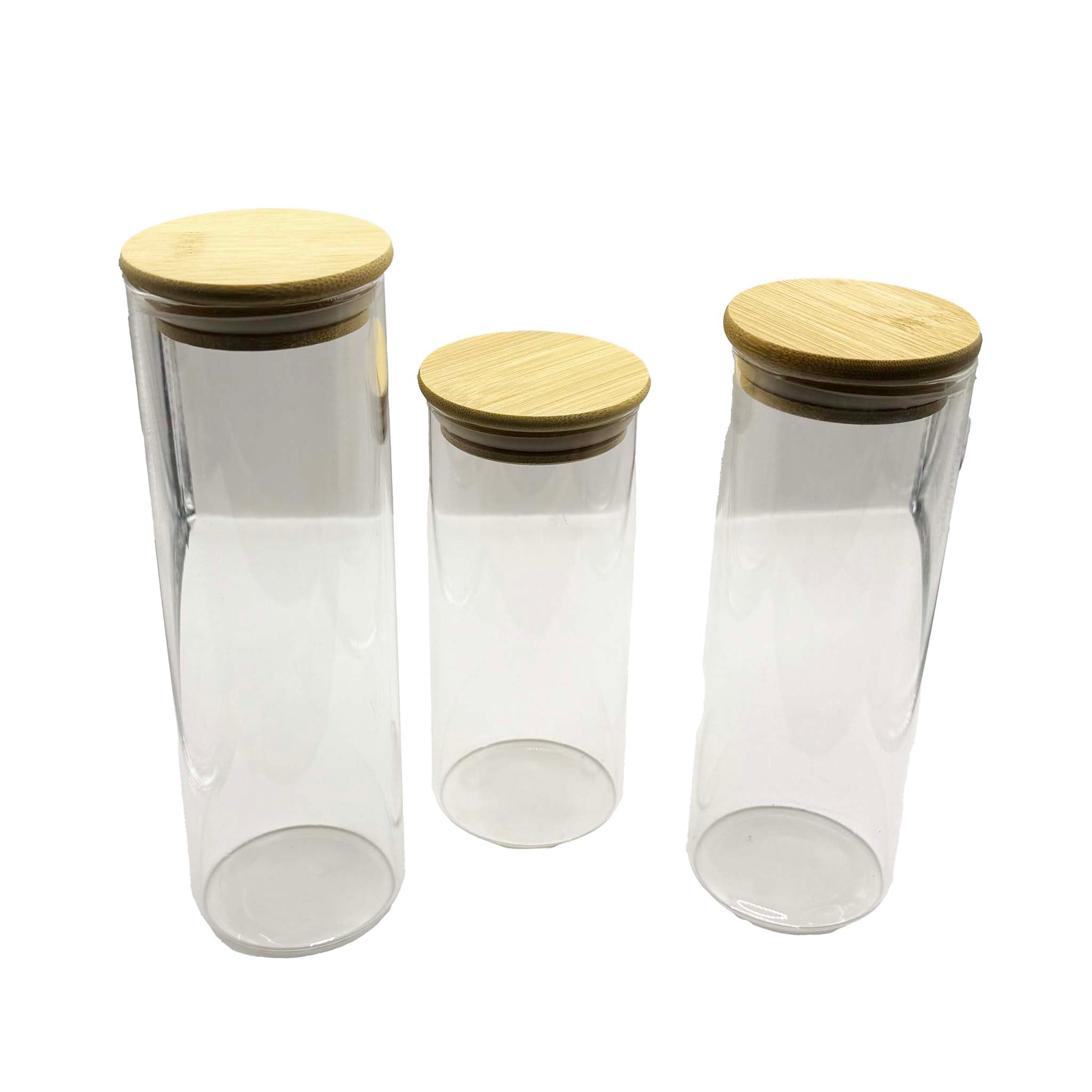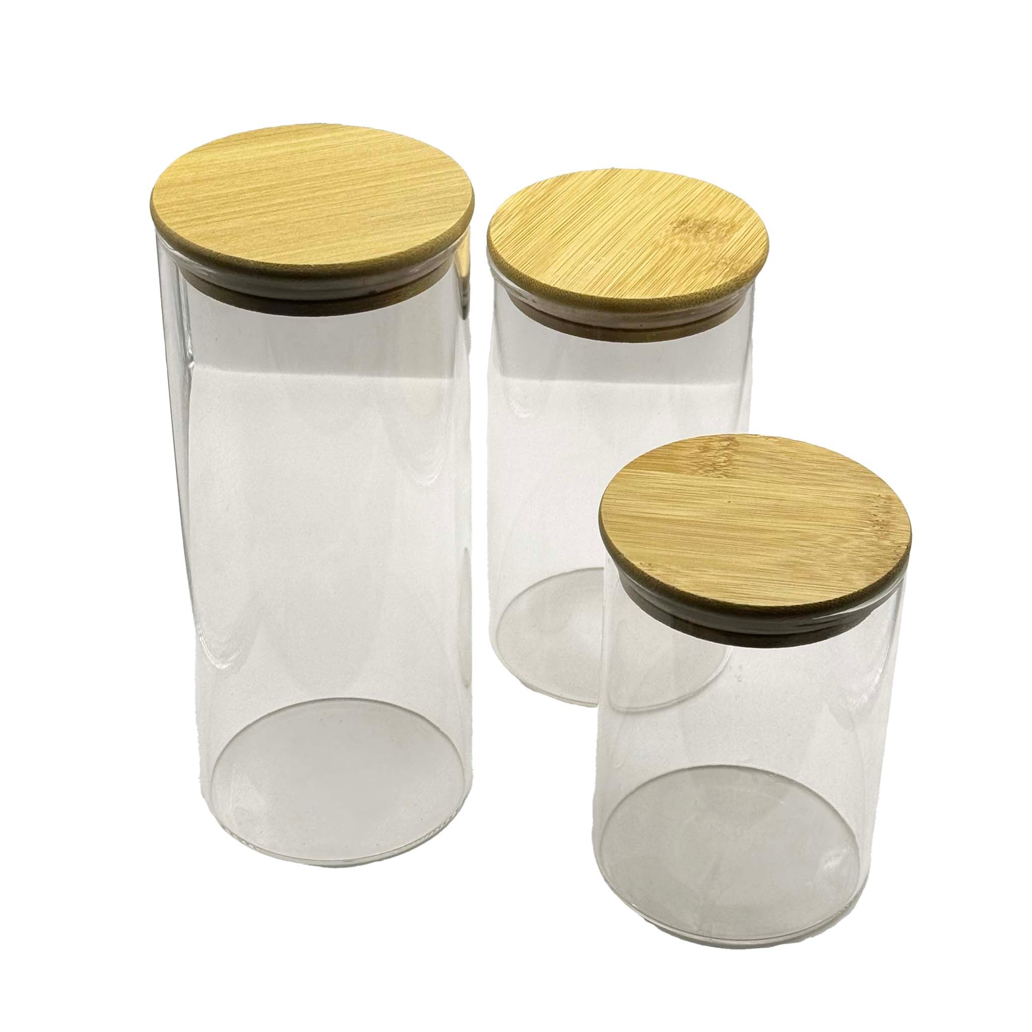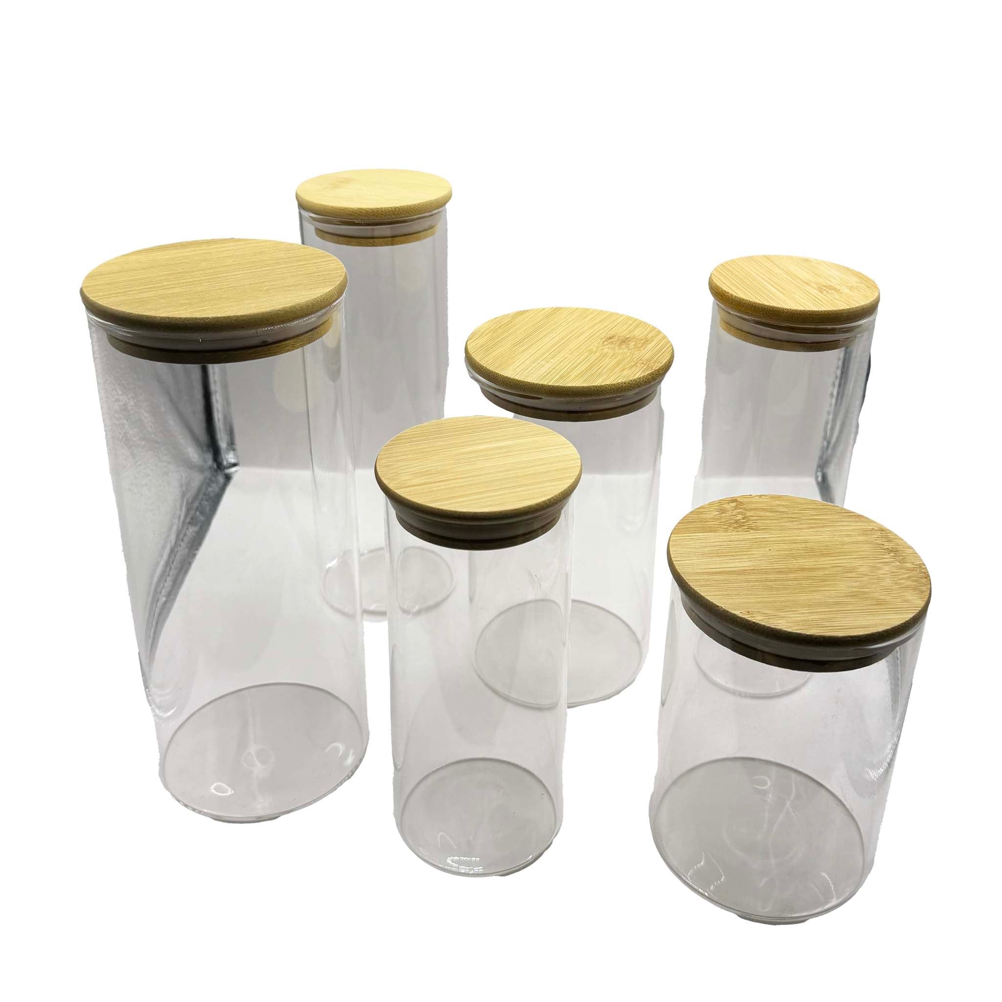 მინის ქილები (საშაქრე/სასუნელე) ბამბუკის თავსახურით