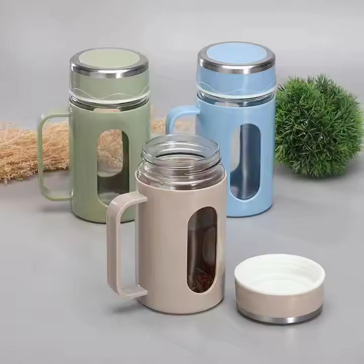 ჩაის ორმაგ კედლიანი შუშის ჭიქები სახელურით.