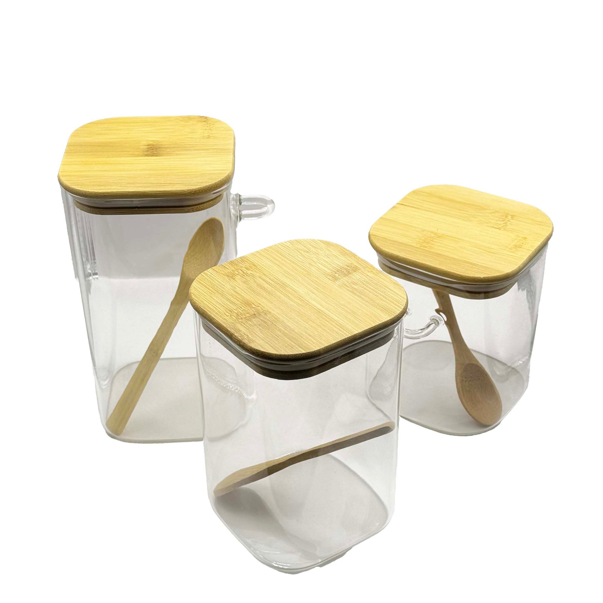მინის ქილები (საშაქრე/სასუნელე) ბამბუკის თავსახურით